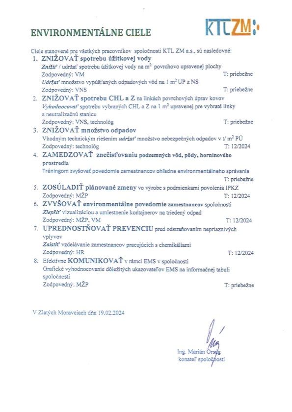 Climate change considerations are integrated into our management system's efficiency assessments and risk evaluations. Due to the scale of our electroplating tanks and the scope of our activities, our company falls under the Act on Integrated Prevention and Pollution Control (No. 39/2013 Z.z.). We operate under permits issued by the Slovak Environmental Inspection Authority, Department of Integrated Prevention and Pollution Control, Bratislava.